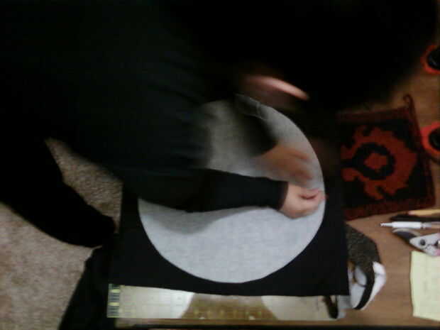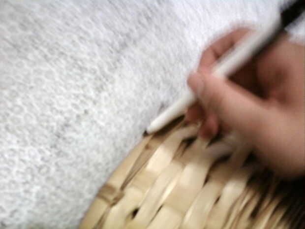 Ahora, acaba de poner su canasta boca abajo (no utiliza la parte inferior para rastro, resultará demasiado pequeño) y traza con un lápiz o plumón marcador. Sólo necesita hacer esto una vez, preferentemente en el tejido más ligero coloreado y en el lado equivocado.