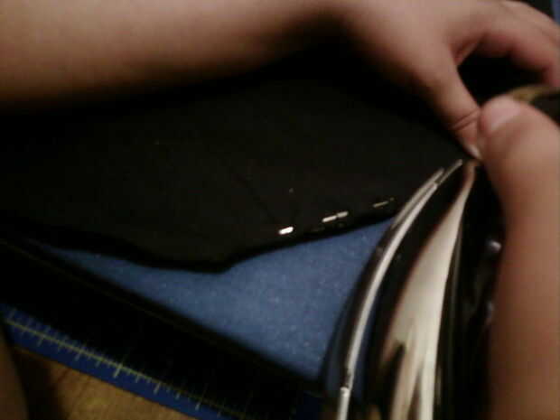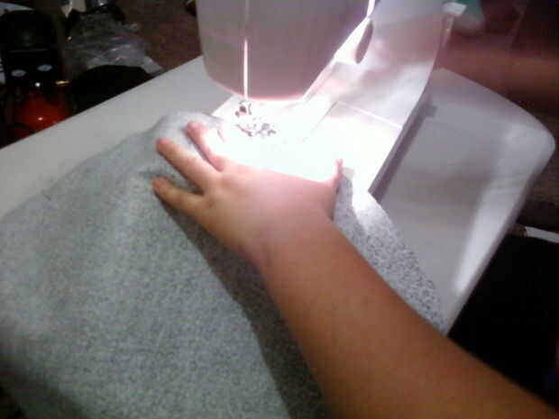 OK, ahora usted puede coserlo juntos. Retire todos sus pernos como se llega a ellos para no romper una aguja. Recorte los extremos de las cuerdas sobrados cuando termines.