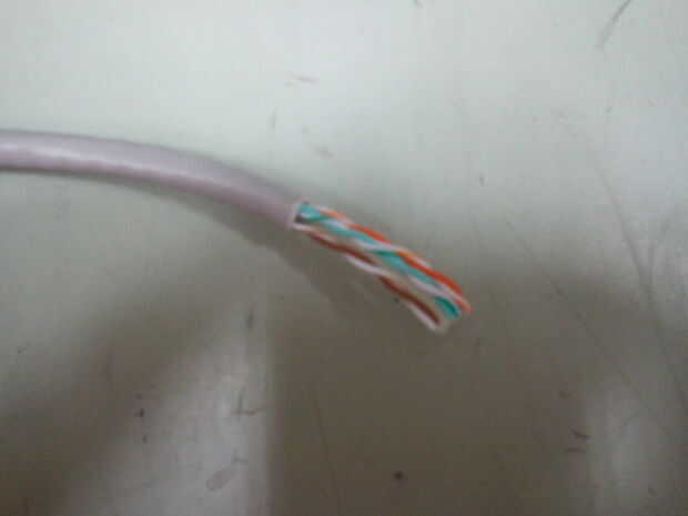 2) Quite aproximadamente 2 pulgadas del cable cubierta sobre el extremo cortado con el pelacable para exponer los alambres internos (deben ser 4 pares torcidos).