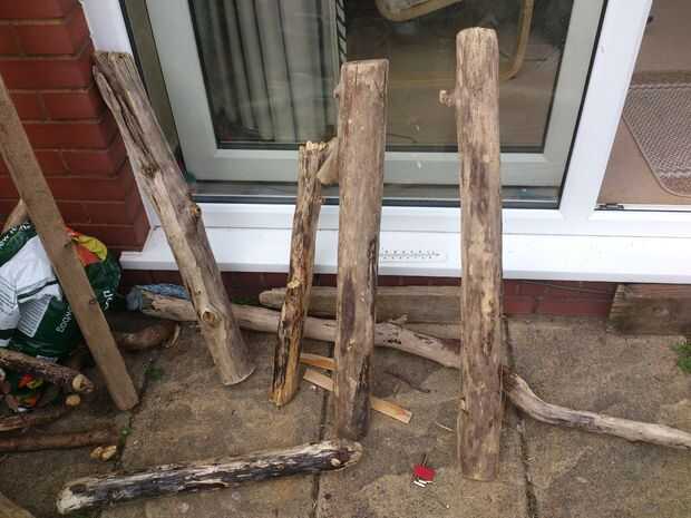 El driftwood fue todos recogido de la playa frente a mi casa, aclarado por la lluvia y secado al sol. He intentado recopilar varios formas y tamaños, piezas rectas sólidas agradables para hacer las piernas y partes principales de la silla, brocas rectas más pequeñas para las camillas, tablas para el asiento y parte posterior y algunas formas más interesantes para hacer los brazos.