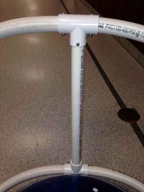 5) en la parte superior de este respaldo, se adjuntará un cruce en t. Inserte el tubo de pvc de respaldo en la parte inferior de la t-cruz.