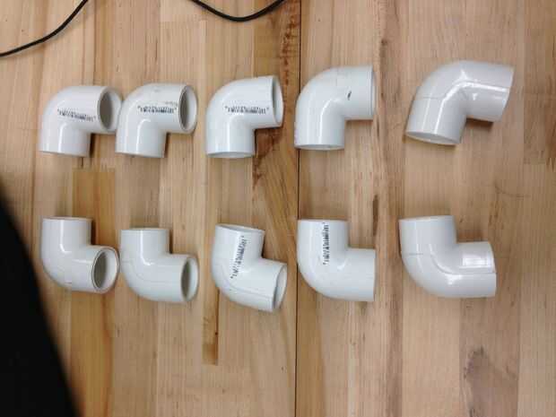 El tubo de PVC viene en un tamaño mucho, use una regla para marcar la longitud que necesita y luego usa los cortadores de PVC para cortar hacia fuera.