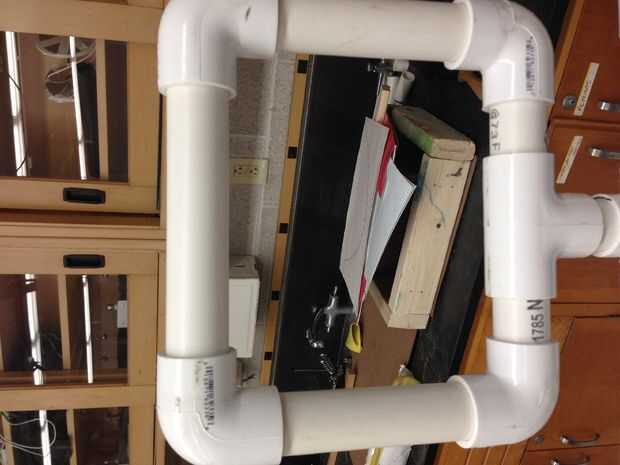El conector en T conecta los codos de la parte inferior dos con 2.5 de PVC en entre, y el conector en T también se conecta a la Cruz de la parte posterior de la silla.