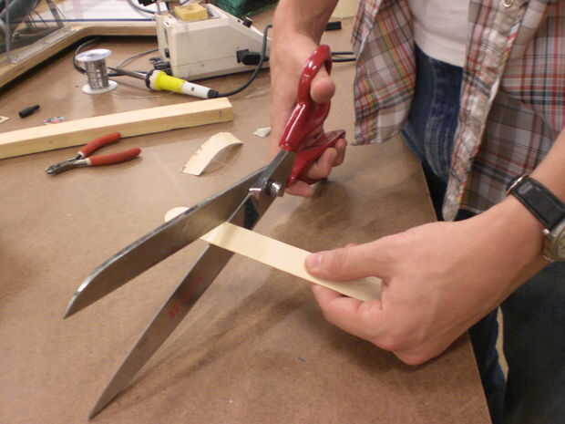 2. Corte el stick de arte gigante para hacer dos de 1 "x 1" cuadrado de piezas.