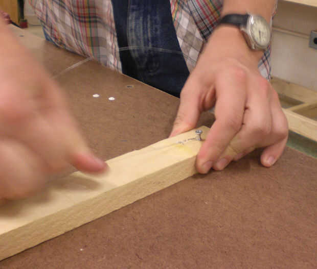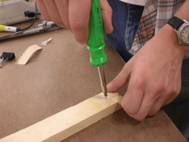 1. Taladre previamente un orificio piloto en el cuerpo de la guitarra (pino blanco) y el tornillo en el tornillo.
