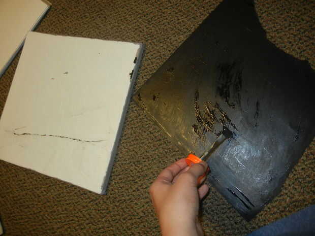 Una vez que se hace aplicar el papel a la lona. Al hacerlo, usted puede o bien dejarlo como una hoja entera, o usted puede rasgar para arriba, depende de cómo desea que se vea.