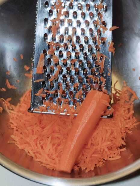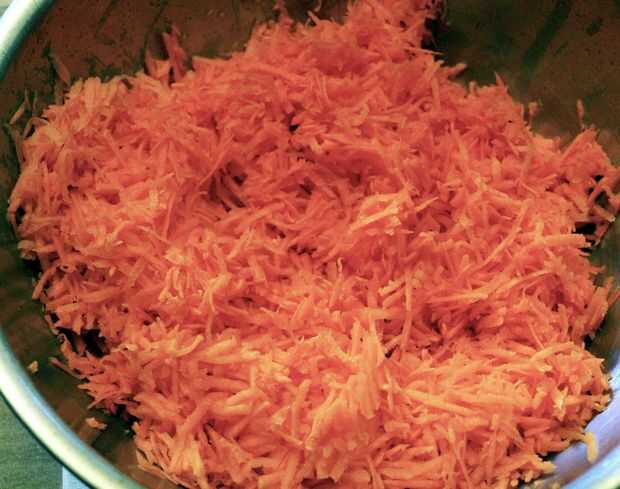 Empezar con zanahorias: para este lote utiliza aproximadamente 3/4 de una bolsa de 2 libras. Puesto que es verano y jardín creciendo a tiempo si usted tiene sus propio jardín zanahorias que es aún mejor. Pelarlas y lavarlas. Luego, utilizando una trituradora o si lo desea, un procesador de alimentos, tritúrelos en un montón de pedacitos de zanahorias. Atento a que los dedos cuando usted consigue cerca de los extremos, no quiere agregar partes de dedos a la mezcla. Utilizar una trituradora de mano para pequeños lotes porque no me gusta tener que limpiar la máquina de procesamiento de zanahorias a pocos. Depende de usted, de cualquier manera que las zanahorias resultan de la misma.