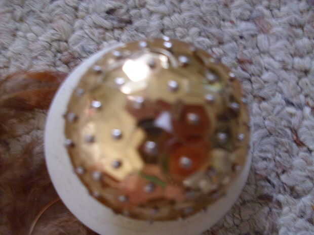 hace muchos meses que hice una snitch dorada para mis amigos. Ahora, craftsmith y cassidyp34 me pidieron un instructivo paso a paso, así que aquí vamos :Dse necesita:-pequeñas bolas de poliestireno (1)-toothpicks(2) 2-paperboard(3)-brush8(4)-Scissors