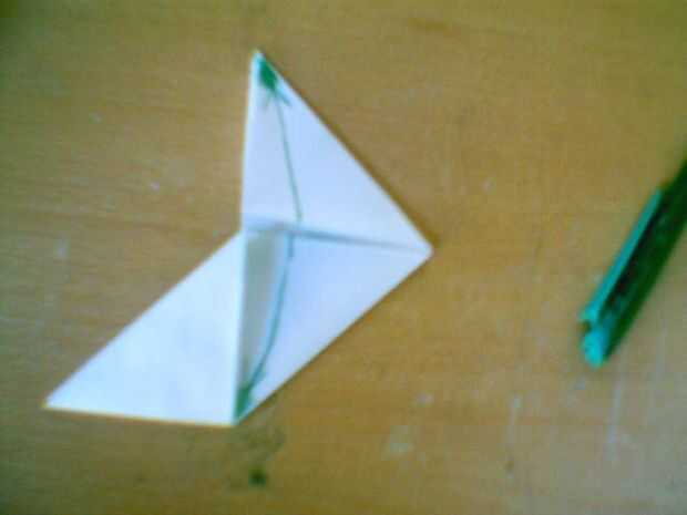 doble el papel en medio retrato, entonces abierta esta será una línea de guía para hacer un doblez triangular como se ve en las fotos luego doblar y doblar y luego doblar y luego doblar otra vez tienes que hacer cuatro de estos