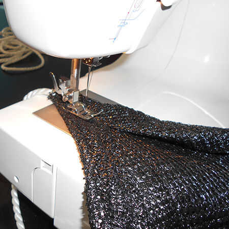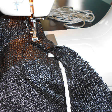 3. al llegar justo antes de 10cm del borde, la cuerda y coserlas esta cerrado. Ejecutar los puntos de sutura sobre la línea de nylon para asegurar firmemente dentro de la funda de la red. Ir poco a poco para no a romper la aguja y si encuentra que la máquina no cose a lo largo de la línea, quitarlo y hacerlo a mano. No tengo ningún problema pero no de todos los la máquina de coser es el mismo.