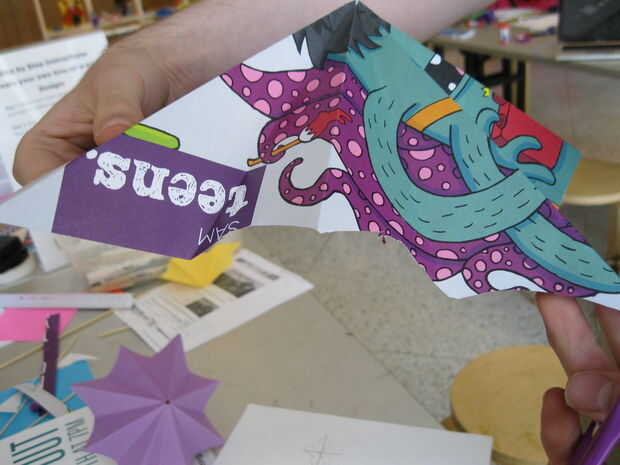 Cómo hacer una sombrilla de papel utilizando carteles y oficina de suministros (5 / 11 paso)