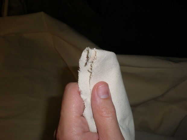 Un par de pulgadas desde la parte superior, dejar la vaina girando la puntada en un ángulo de 90 grados. Desea dejar espacio suficiente para el paño actuar como su propia bisagra. Debe haber un agujero en el centro superior de la sombrilla, pero si no hay, no preocupar-que va a utilizar un tornillo allí más tarde de todos modos.