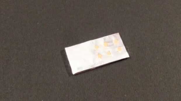 3. Marque los agujeros equidistantes para 6 LEDs y usando la punta de un cuchillo cortan la lámina de los agujeros.