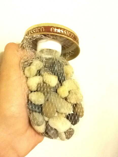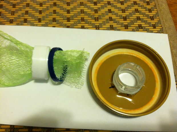 Ahora permite cortar abierto la luffa y hacer una cesta con él, sellar un lado y dejar abierto el otro lado, agarrar la soda tapa de la botella y cortar un agujero en él que sea mirada como un cilindro, esencialmente se trata de la tuerca de fijación de la canasta, llenar la cesta con los guijarros y se alimentan a través de la tapa de la botella y el anillo y seguro que la primera paz , ¿necesita ayuda? refiera a los cuadros de asistencia.