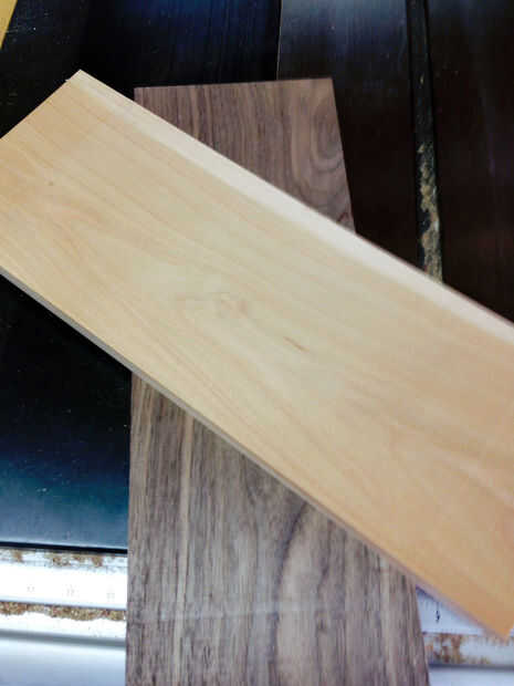 Seleccionar la madera que desea utilizar como la parte principal de su tabla de cortar.  Elegí nogal y haya.  Esta madera ha sido planeada y articulado.