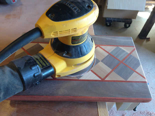 Más tablas se hacen para que la veta esté mirando hacia arriba. Esto es porque la veta es mucho más difícil que el grano de lado y sostiene mucho mejor después de años de uso, pero es clase de un dolor para hacer uno como ese. Así que yo quería hacer