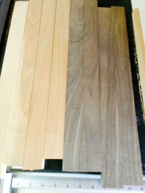 Aquí están las tiras de 1 1/2 pulgada de haya y nogal.