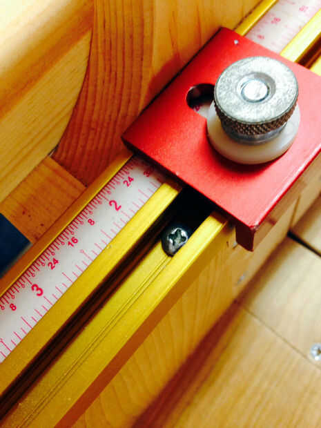 Utilizando el corte transversal patín () de mi marido hace, configurar el bloque de tope en 1 1/2 pulgadas para cortar mis cuadritos. Esto hace que para un trabajo rápido. Corte, deslice la pieza sobre, corte otra vez.