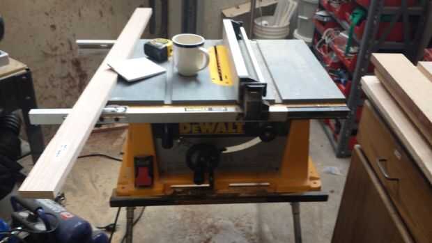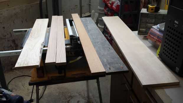 Rasgar la madera en tiras según sus planes. Derecho antes de empezar a rasgar las tiras es un buen momento para verificar dos veces tus matemáticas. Incluso comprueba su matemáticas otra vez después ripee su primera pieza es inteligente. Haciendo eso me ha salvado un montón de dolores de cabeza a largo plazo. El RIP va bastante rápido y el detalle más importante es hacerlas todas el mismo ancho.