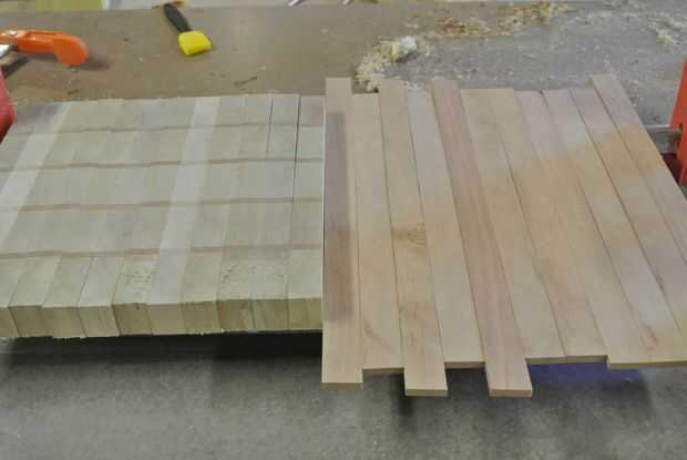Más tablas se hacen para que la veta esté mirando hacia arriba. Esto es porque la veta es mucho más difícil que el grano de lado y sostiene mucho mejor después de años de uso, pero es clase de un dolor para hacer uno como ese. Así que yo quería hacer