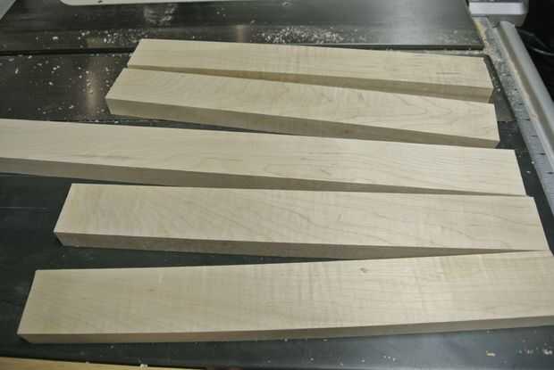 elegí arce para mis "ladrillos" por ninguna otra razón excepto que tenía un montón de arce.  Corté cinco tiras 2" amplia eran aproximadamente 16" de largo.  Estas retiradas mientras que cortar la madera para su "mortero"
