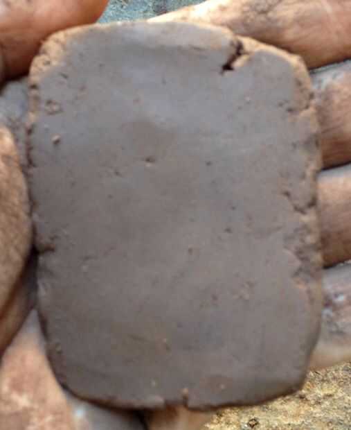 Antes de formar la tableta es una buena idea bien amasar la arcilla para es como una consistencia constante como los bordes suelen ser ligeramente más difícil de lo que habrá secado más el centro. Para formar la toma de la tableta la arcilla, una vez se ha alcanzado una consistencia trabajable y forma en un rectángulo de áspero. A lo largo de la historia serían diferentes tamaños dependiendo de lo que la tableta se utiliza para. Decidí hacer una tabla relativamente pequeña que cabría en la palma de mi mano. Así que forman una hoja de unos 5mm de espesor y luego inscrito mi inscripción y cortan alrededor de él para dar un pequeño rectángulo de 45mm por 40mm.