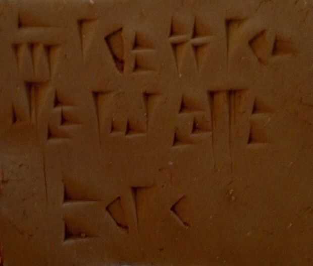 Entonces escribí a lo que una se iba a inscribir en un poco de papel y luego con el lápiz táctil inscrito sobre la arcilla. Es muy difícil describir cómo utilizas el stylus y probablemente tendrás que escribir algunas pruebas primero. Para hacer las formas que usted presione el borde afilado de la aguja en la arcilla, el ángulo en que se hacer cambios así que la longitud de la cuña hará. Lleva un tiempo acostumbrarse a hacerlo, pero después de un tiempo usted consigue la caída de la misma.