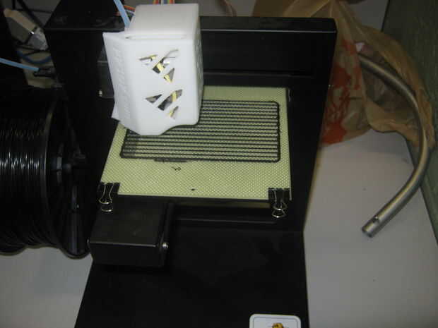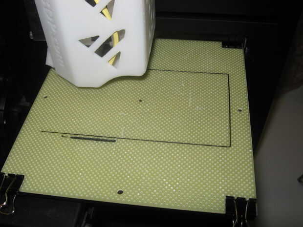 Encender la impresora 3D y altura de la boquilla Ajuste donde usted lo desee.  Asegúrese de que utilizar la opción de balsa al imprimir porque si su tarjeta es delgada no imprimir correctamente.  En la segunda foto he demostrado por qué utilizas una balsa. Si usted mira de cerca, las líneas tienden a romperse. La primera imagen muestra una preciosa balsa realizada.