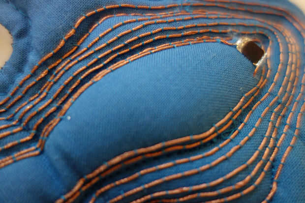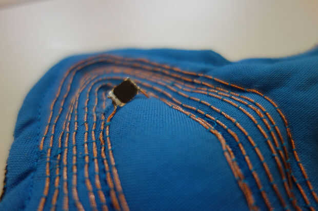 En el extremo de la bobina va ind hasta el otro lado de la "cara" al chip NFC. Para obtener el hilo conductor al lado del chip (sin entrar en contacto con la bobina), colócala en el puño, debajo de la bobina. Luego soldar muy cuidadosamente el extremo de hilo conductor para el chip. He dejado el hilo largo mientras que el soldado, luego había ajustado abajo después.