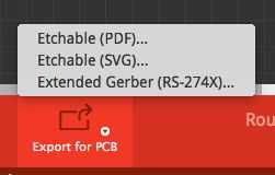 Una vez abajo PCB necesita haga clic en exportar para botón de PCB en la parte inferior y haga clic en el botón etchable con svg junto a él. Una vez que usted haga clic en guardará archivos en el escritorio o donde quiera guardarlo.