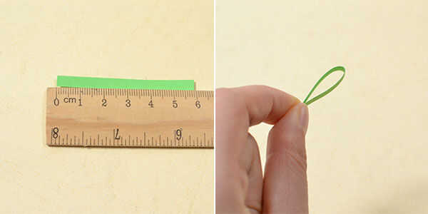 1 º cortar un trozo de 5mm verde quilling papel, palillo los 2 extremos y juntos;