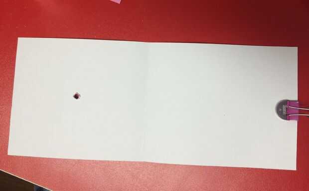 Haga un orificio en un lado del LED a. Usé una aguja de tejer para hacer un agujero limpio. Luego, dibujar la línea a seguir para hacer el circuito. Marca el positivo y negativo. Usé la batería de la moneda con la negativa en la parte inferior, por lo que el lado negativo del LED se enfrenta a la batería y el otro extremo (que se doble hacia abajo y conectar con el lado positivo de la batería) enfrenta a lo positivo.