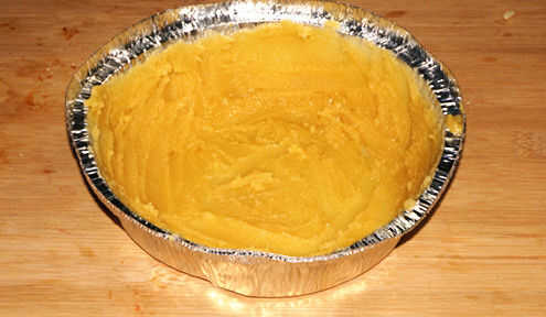 Paso 5: Añadir el agua (6 oz) y mezclar hasta que se forme masa, luego tomar la mitad de la masa y presione suavemente la pasta en el plato de pastel. Hornear durante 10 minutos a 356℉