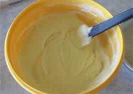 Mezclar juntos de sólidos y líquidos separados. Mezclar los sólidos y líquidos hasta obtener una masa húmeda. Trabajar la mantequilla con batidora de repostería.