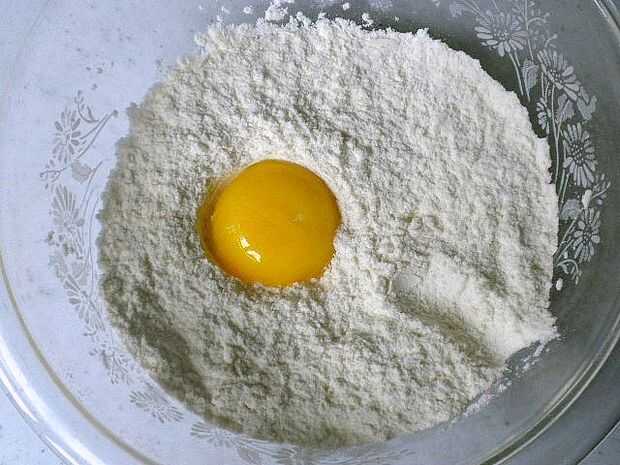 Mezclar en un recipiente la harina, sal, azúcar, yema de huevo, mantequilla y agua fría (añadir más agua si es necesario). Amasar el conjunto hasta que todo se mezcla bien.