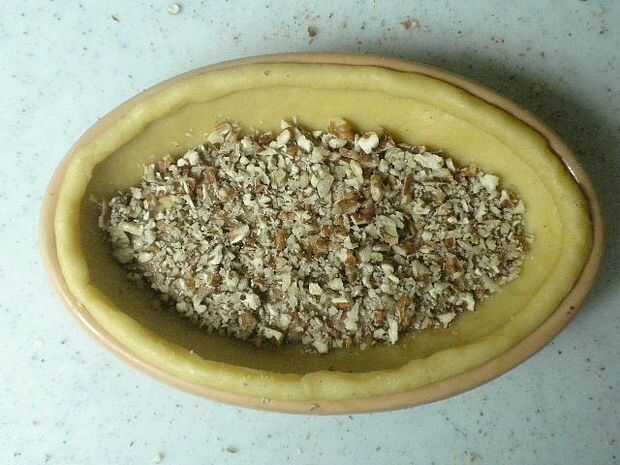 Finalmente espolvorear la nuez restante en la parte superior la mezcla dentro de la empanada.