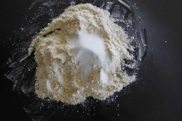 Paso 1: Reunir todos los ingredientes Necesita:2 tazas de harina1/4 taza de azúcar4 cucharaditas de polvo de hornear1/2 cucharadita de salpocos granos de nuez moscada1 huevo, bien batido6 cucharadas de mantequilla fría1/3 taza de lechefresas en rodaj