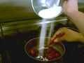 1. Añadir la fruta en una cacerola. Coloque a fuego medio hasta que los jugos se lanzan, a continuación, añadir la maizena con agua. Poner a hervir, luego reducir a fuego lento. Continuar a fuego lento durante unos 10 minutos o hasta que espese.