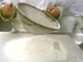 4. Añada agua a la mezcla de harina. Mezclar muy suavemente, hasta que se absorbe agua. No trabaje excesivamente la masa.