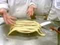 Corte el resto de la masa en tiras. Colocar las tiras sobre la tarta.