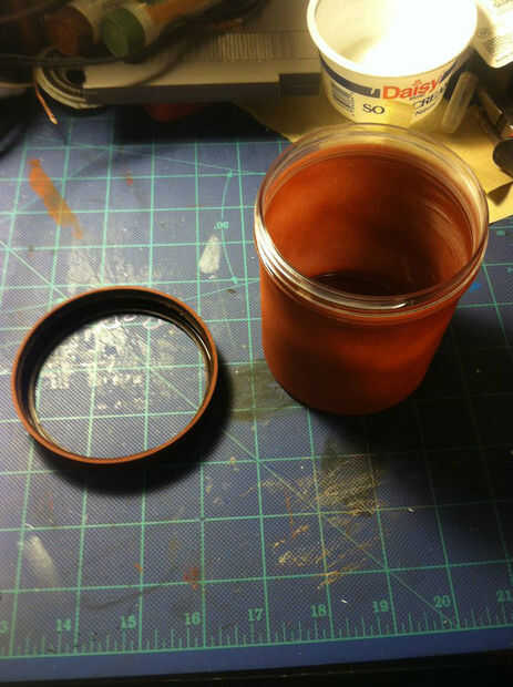 Para empezar me enciende el vaso boca abajo. No queremos conseguir pintura o cartilla en el interior o en la rosca. Al final nos va ser pegando todos juntos y obtendrá un mucho más fuerte enlace pegado al plástico en lugar de una capa de pintura. De todos modos golpeó con su primera capa de imprimación. Su siempre una mejor idea que hacer un par de capa más ligera en lugar de una pesada capa. Carreras y gotas son no lo que queremos aquí. Una vez hecha la primera capa, lo fijó a un lado para secar. Su super importante que cada capa se seque correctamente antes de pasar a la siguiente etapa, así que siga las instrucciones en la lata. Me gustaría esperar al menos una hora entre capas. Ver algunos netflix, salir, apenas sea paciente porque va a ser mucho menos divertido tener que lijar todo y empezar de nuevo.