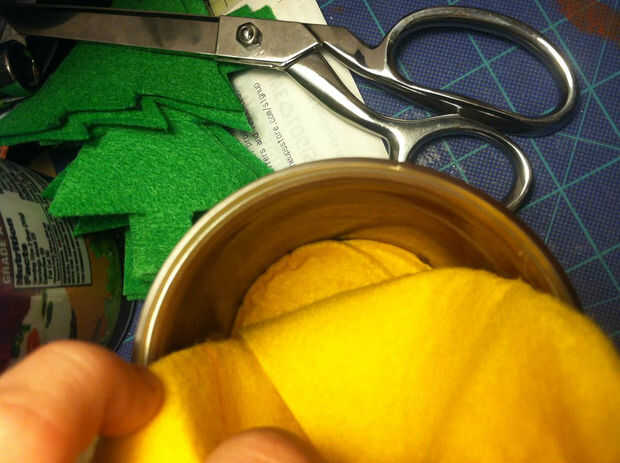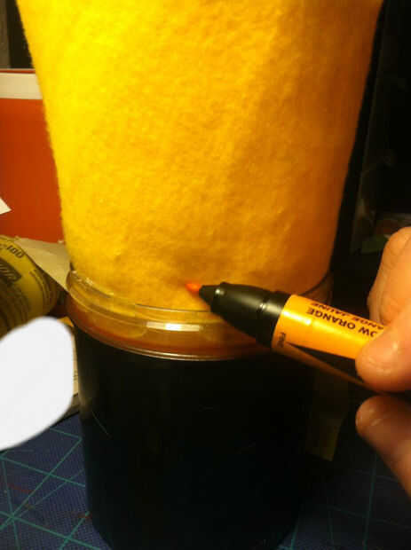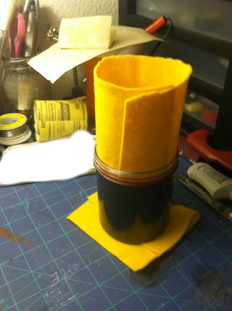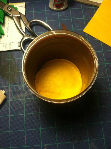 En primer lugar, trazar el fondo de la taza sobre el fieltro. Su si bien es un poco más grande, que podrá estar cubierto hasta por los bordes. A continuación, enrollar algunos fieltro y pegar allí para averiguar cuánto necesitarás cubrir los lados. Usted probablemente podría medir esto o algo pero que sería un todo y no hacer eso. Si usted quiere ser lujo puede tratar de hacer la costura como ocultos como sea posible, pero ten cuidado acerca de tomar demasiado sentido.