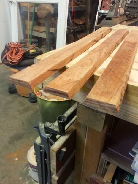 OK, así que el primer paso a este absurdo es su piso de pinotea en tableros regulares ya que están llenos de surcos. Así que la manera más fácil es ejecutar a través de una sierra de mesa para llegar a una sección rectangular sólida. Luego les dan una arena rápida al bajar cualquier marcas.