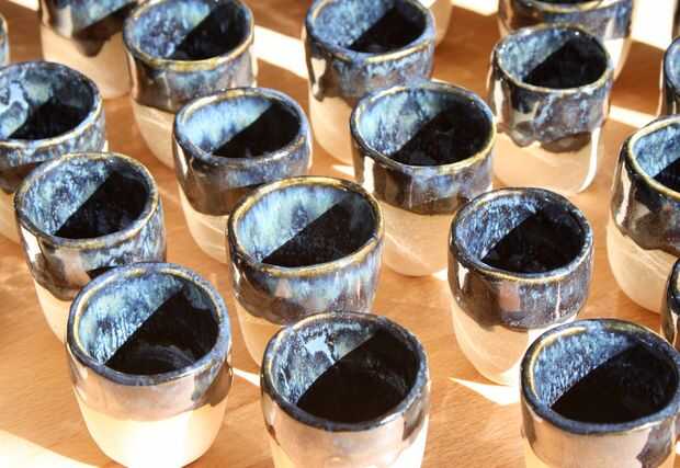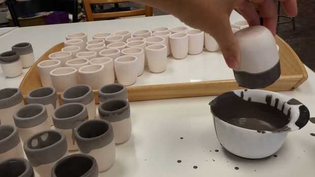 Después de que fueran fuego bisqued usé pincel en esmaltes para cono de 6. I vierte y cruce los bordes en azul y cepillado metálico encima para que se ejecute y por goteo. Revisa los sitios web de la compañía de esmalte para combos de esmalte, y demuestran que los ejecutan y que permanecer estable. Aamaco y Mayco hacen algunos bonitos colores para cono de 6, a veces se muestran lo que parecen en el cono de 10 también. La mayoría comunidad estudios y colegios fuego cono 10, compruebe que su temps de esmalte y la arcilla para obtener mejores resultados.