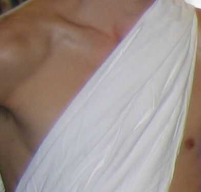 con la izquierda sobre la mano, agarrar el resto de la hoja. Cuelgue la hoja sobre el hombro opuesto de donde la otra mano sostiene las hojas. Tirar desde detrás de la espalda con la misma mano como antes, que la han hecho un círculo completo y el resto de la hoja está de vuelta donde empezó. Debe hacer más sentido cuando tu realmente ponerse la toga.