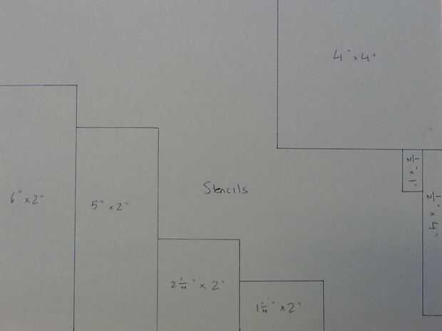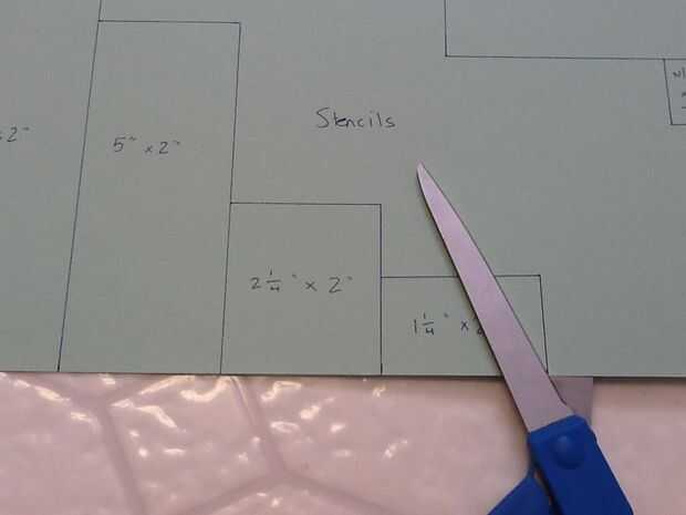 Una vez que los extrae, recorto con tus tijeras y escribir las medidas de las plantillas en ellos. Esto nos ayudará a recordar las dimensiones de las piezas.