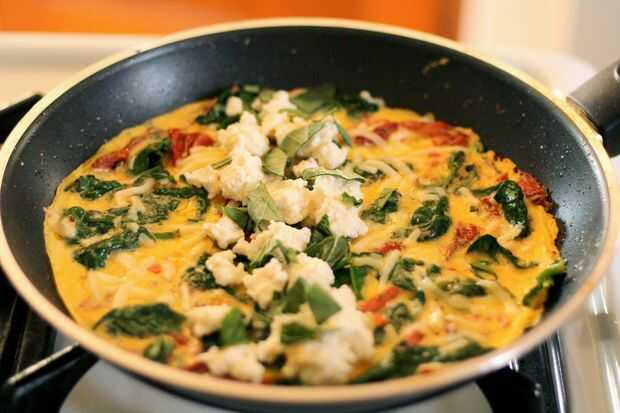 Vierta la mezcla en un sartén pequeño caliente. Puesto que sólo estamos utilizando un huevo, un recipiente grande no es necesario. Además, recuerde que se trata de un huevo, por lo que tomará apenas cualquier tiempo para cocinar. Si usted es una especie de gurú de la espátula, y quiere voltear la tortilla por la mitad, entonces que así sea. De lo contrario, está totalmente bien para simplemente voltear la tortilla en su otro lado.