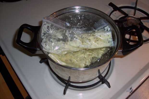 Poner las bolsas directamente en el agua hirviendo. Dejarlos reposar por lo menos 13 minutos para convertirse en completamente cocido. Créeme, no quieres la intoxicación alimentaria durante 3 días porque estaba demasiado impaciente esperar 13 minutos.