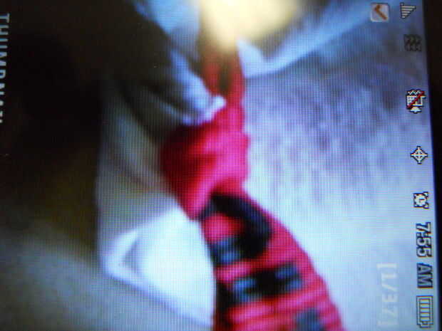 8) un nudo en el extremo de la cuerda más cercana a la vieja camiseta.