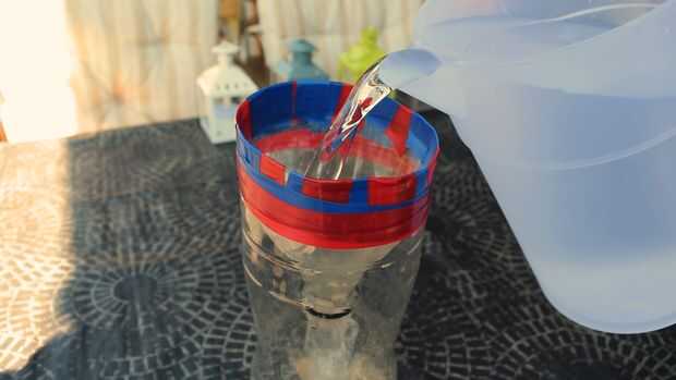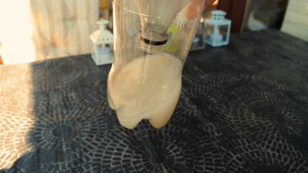 Poner la levadura el azúcar y el agua tibia en la trampa de botella.